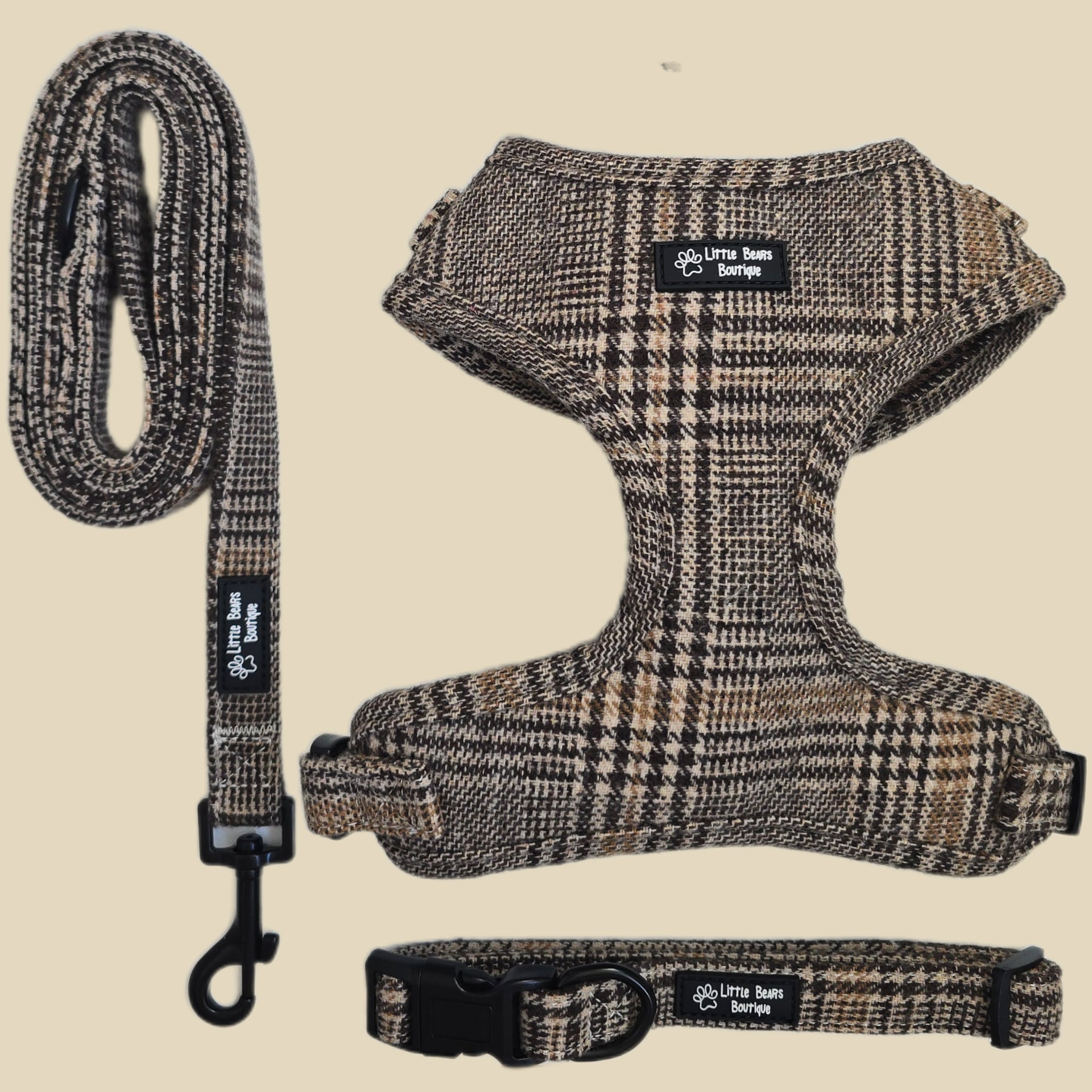 Step out in timeless style with the Glen Check Bundle. Featuring a matching harness, collar, and lead in soft browns and creams, this set brings heritage charm and everyday practicality to every walk..