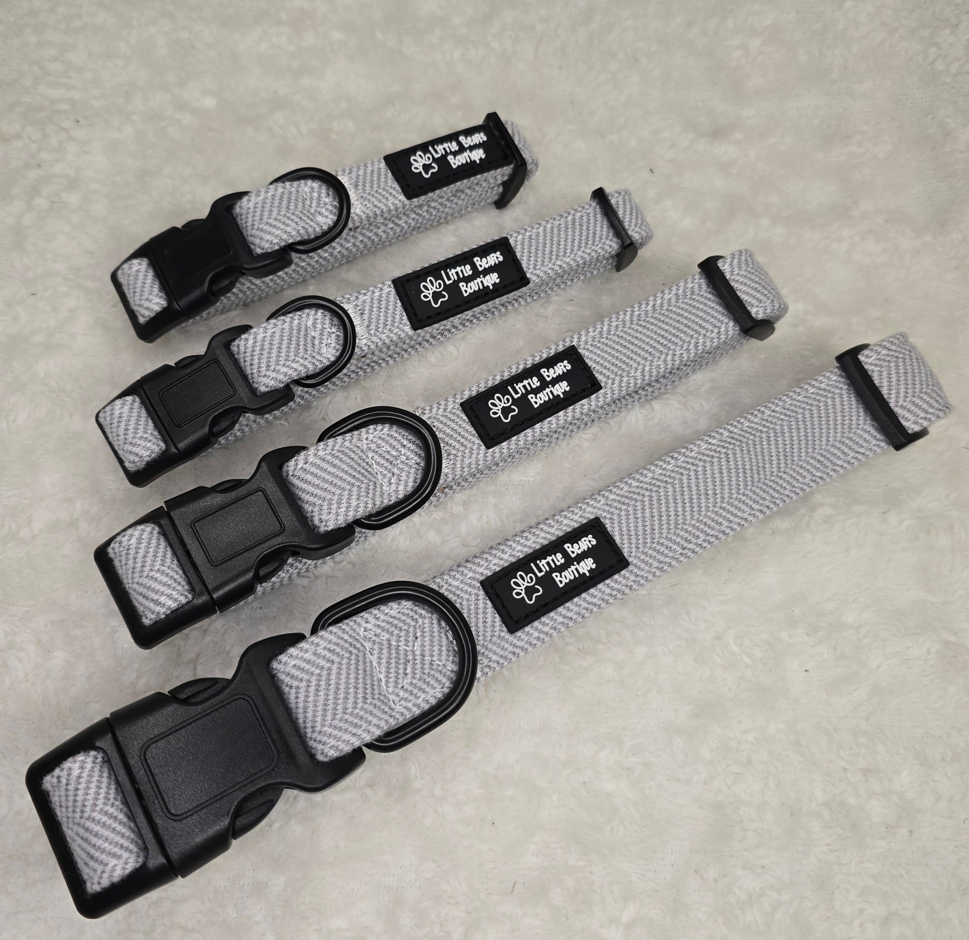 Dapper, distinguished, and undeniably cool. Our Grey Herringbone Tweed Collar is the ultimate statement of refined canine style. Woven in a classic herringbone pattern with soft grey tones, it brings timeless charm to every tail wag.