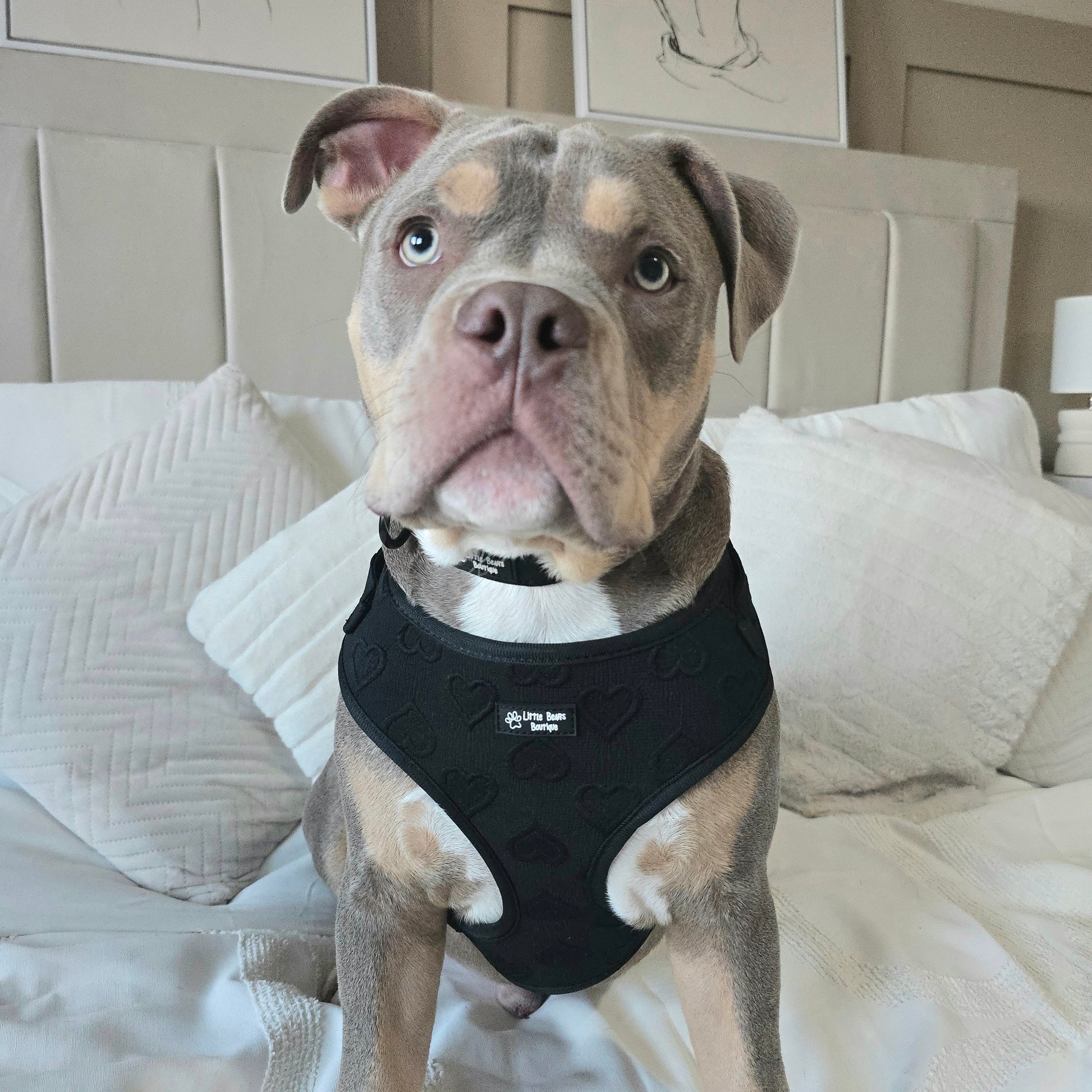Elevate your pup’s wardrobe with the Black Heart Embroidery 3 Piece Bundle. Featuring a beautifully coordinated harness, collar and lead. This timeless set pairs deep tones with an elegant embroidered pattern for walks that feel as chic as they look.